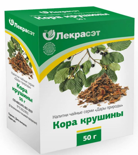 Кора крушины считается эффективным слабительным средством, что обусловлено ее составом. Она обладает мягким воздействием, проявляющимся через 8-10 часов после приема препаратов на ее основе.