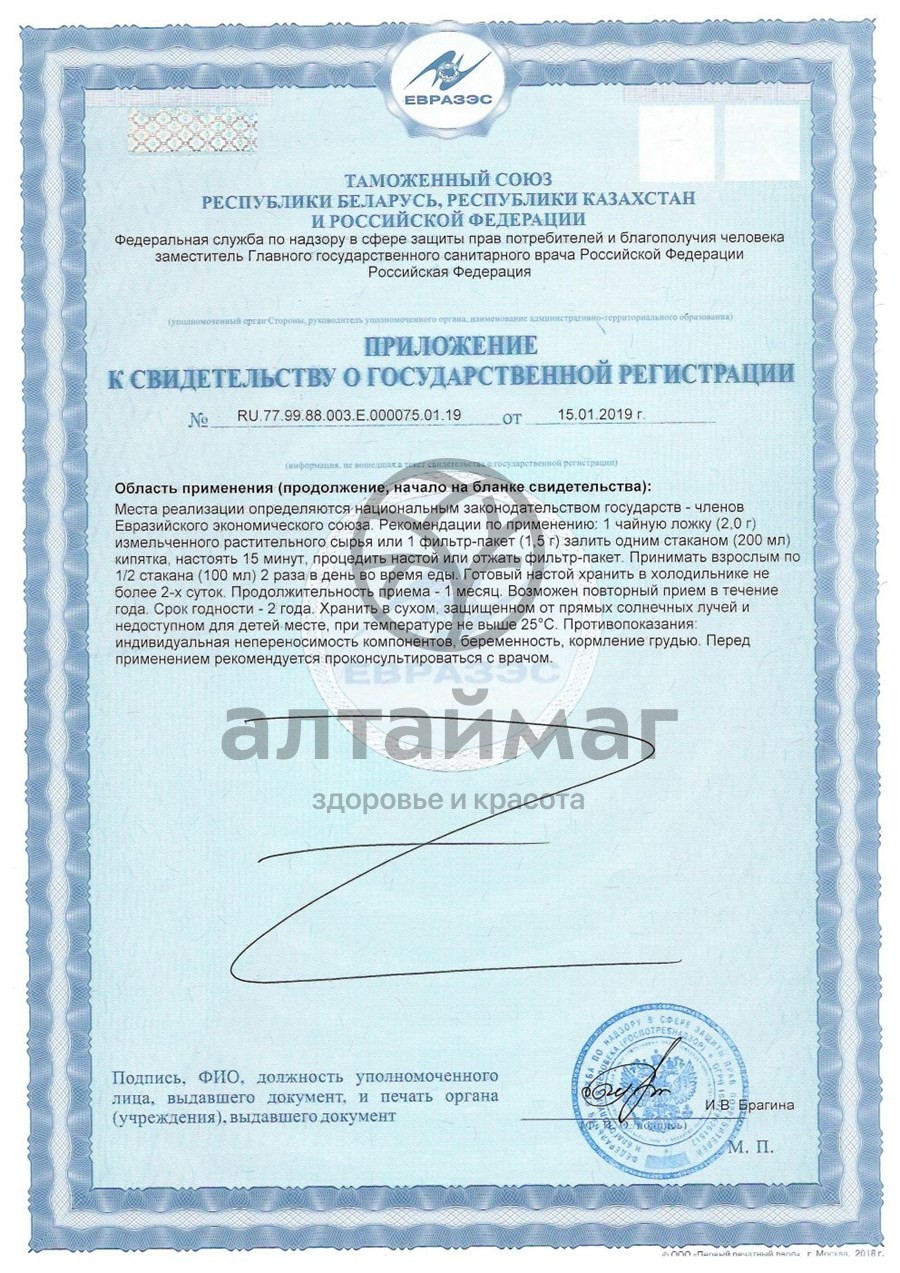 1 пакетик (1,5 г) залить 1 стаканом кипятка (200 мл), настаивать 15 минут, процедить, взрослым принимать по 1/2 стакана 1 раз в день во время еды. Готовый настой хранить в холодильнике не более 2-х суток.Продолжительность приема - 1 месяц. При необходимости прием можно повторить. Перед применением проконсультироваться с врачом.